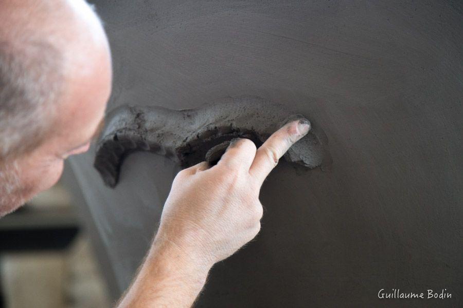 Vient ensuite la fabrication de la base de l'amphore. Après une bonne journée de séchage, il est possible de commencer à monter de 10 à 15 centimètres par jour en attendant que la base sèche entre chaque passage. Il faut lisser en mouillant de temps en temps pour obtenir une surface relativement lisse.